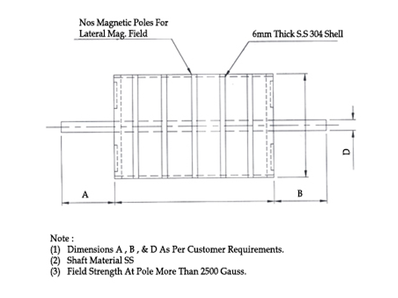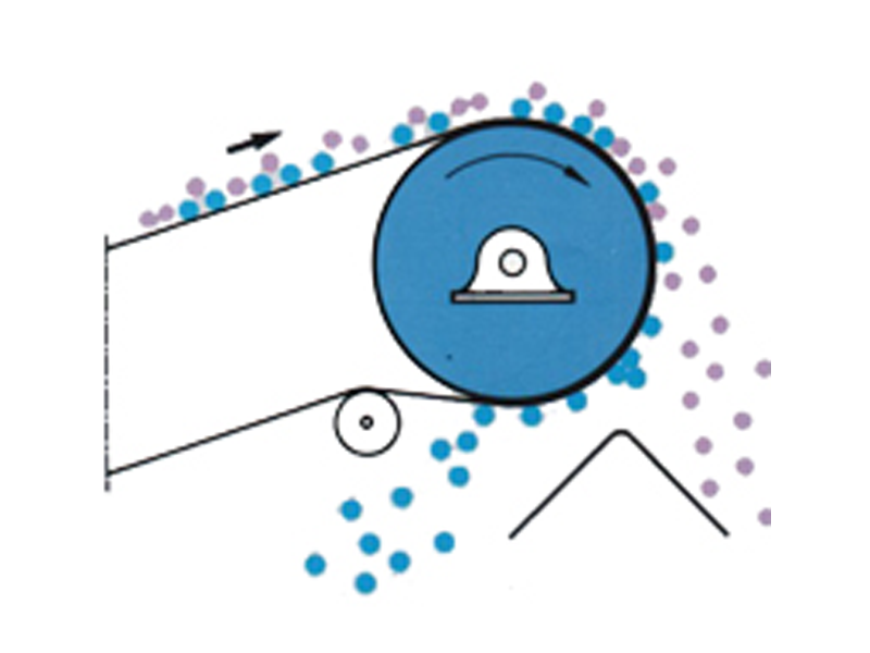 The magnetic Drum pulley replaces the drive pulley at the end of conveyor belts. In view of the wide variety of conveyor belt types, the drum pulley are supplied made to measure and ready for installation. As the figure clearly show, the magnetic head roller extracts the iron particles from the material flow and carries them to the underside of the belt where they are removed and collected. Head roller magnets for conveyor belt are supplied in permanent magnets.
