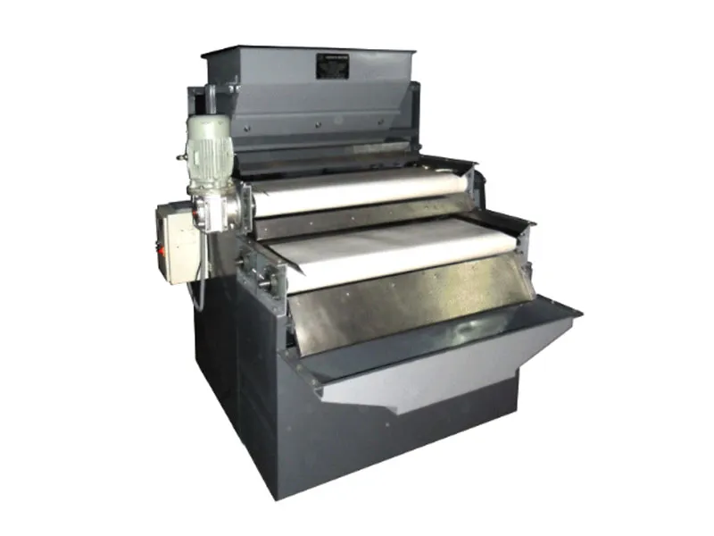 The machine incorporates high energy rare earth neodymium permanent magnetic roll assembly which is manufactured and assembled under proprietary specifications to generate unsurpassed magnetic field gradients. Under this high intensity magnetic field, weekly magnetic contaminants can be easily removed efficiently. The magnetic rolls can be structured to treat particle sizes ranging from 200 mesh up to 50 mm.